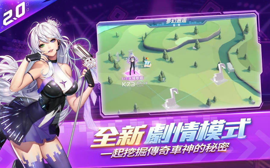 飞车大陆一年一度的QS音乐节盛典开始啦!新剧情拉开序幕,四大车神首次亮相,陆续揭晓飞车大陆不为人知的秘密……盛典现场为车手们准备了全息投影的3D炫酷地图,地图上遍布空间传送点,让你畅游整片大陆!更有四大车神之一、极光动力车神兼知名歌姬镜惊艳登场,全新A车S-追光者、组装车以及迅捷流星在剧情中开放试驾!解锁神秘关卡更可获得永久的限定套装奖励哦!