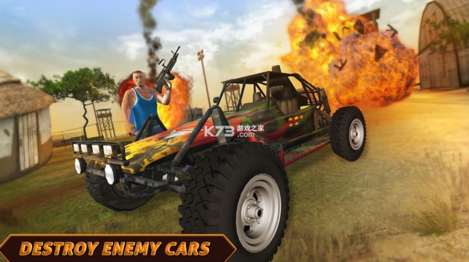 4、 选择武器化的越野车或装甲摩托车, 射击并摧毁所有敌人的武器;
