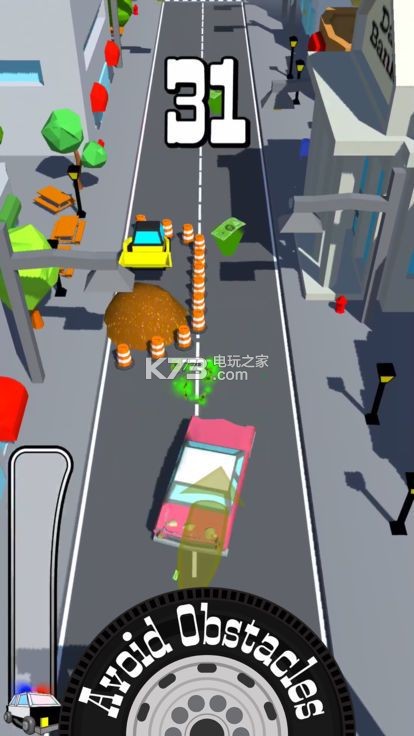 穿过繁忙的街道。不要被行人车辆撞到。道奇建筑。筹集资金。你能走多远?逃离警察!