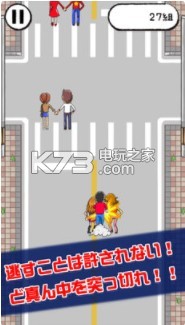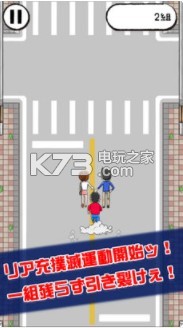 游戏中玩家要操控侣去死团的单身狗角色,左右滑动控制角色,期间路上会有一对对牵着手的情侣;