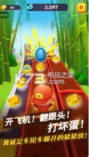 《猪猪侠》动漫正版跑酷游戏,角色在车水马龙的街头健步如飞犹如一倒迅驰的闪电,在呼啸而过的车流中翻滚跳跃腾挪躲闪。穿越各种复杂多变的地形障碍,搜集道具,拾取金币,体验速度与激情。