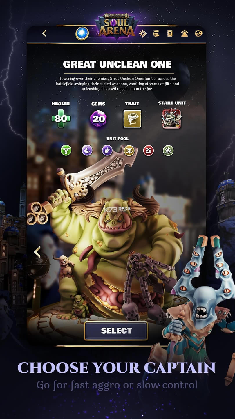 《战锤AoS灵魂竞技场国际服(Warhammer AoS: Soul Arena)》是款自走棋风格的策略游戏,你需要在地图上放置不同的英雄,通过升级英雄的等级、技能来提升单兵作战力,同时搭配不同的英雄实现更强的战斗力。