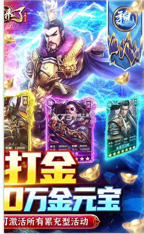 ★打金功能:充值卡无限送,每天登录都可以打开无限充值卡包,上线即领充值卡;国战、剿匪、宝箱100%获得充值卡,做到真正的来玩就送。基金、累充奖励随手可得!