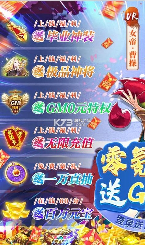 2.上线送无门槛万次抽奖,可获得海量材料,1:500充值比例,海量元宝花不完。