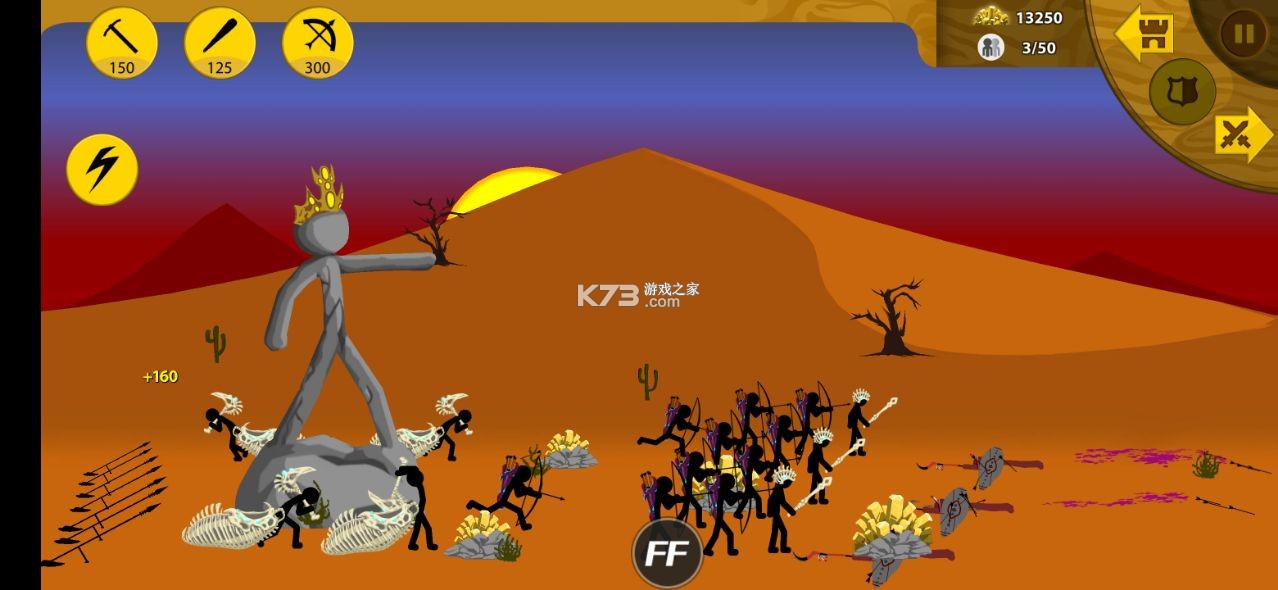 经典的火柴人战争游戏,指挥火柴人勇士作战,提供训练和各种火柴人士兵,组建自己的战队。