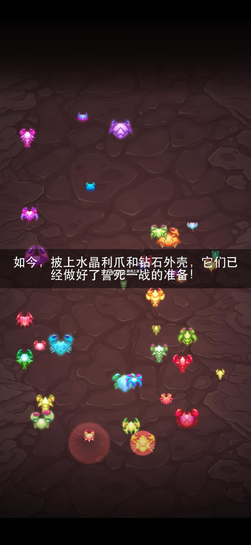 1、独特召唤的游戏系统,选择不一样的战斗螃蟹战士,解锁新的天赋能力。