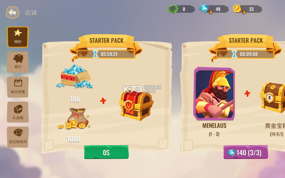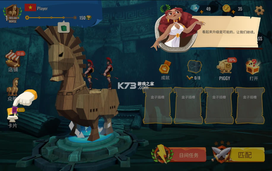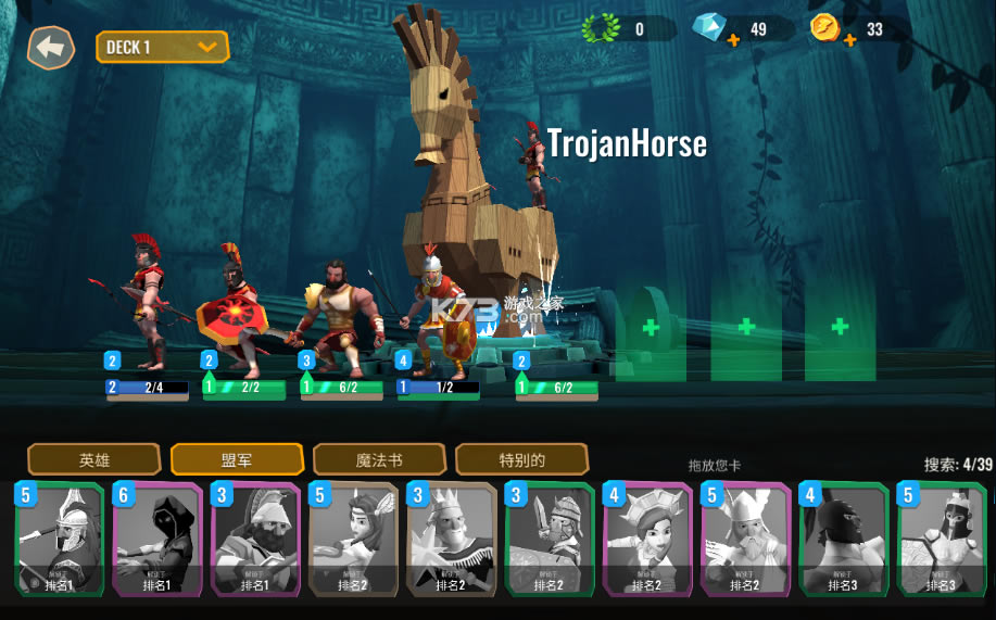 6、神话英雄,通过抽卡的方式来获得希腊神话当中的英雄进行操控。
