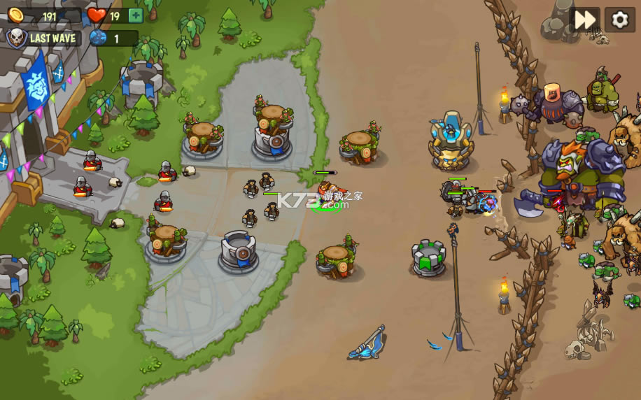是一款卡通休闲风格的策略塔防游戏,该游戏摆脱了传统塔防只有一条进攻路线的枯燥设定,这里每一关的敌人都有多条进攻路线,而且玩家在游戏中需要通关两两合成的方式才能去升级你的防御塔。此游戏画面细腻精致,游戏采用了美式动画风格打造,给你不一样的塔防游戏体验。在游戏中王国边界被怪物入侵,你将招募英雄和战士来保卫你的王国。你将将各种各样的防御塔配合,建立一个庞大的防御,抵挡怪物的入侵。