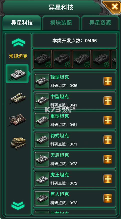 这里汇聚了中外战场上威名赫赫的各种主战坦克,能够让您组建一支前所未有的强大陆战之师,59式,99式,谢尔曼,虎式,红箭等任您组合成强大的阵容;