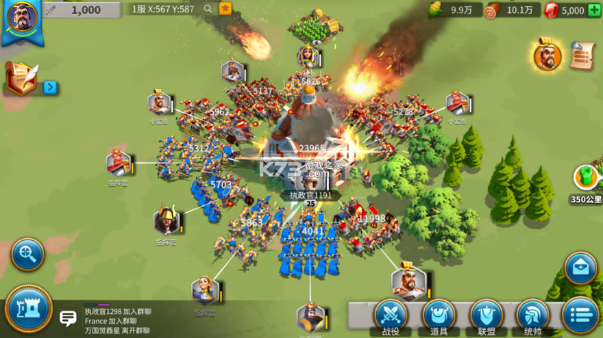 建造部队,集结联盟,来自全世界的数十万玩家与你共同生活在这片土地,掠夺资源,弱肉强食,以战养战!利用真实的地图优略势打造与众不同的战争策略!