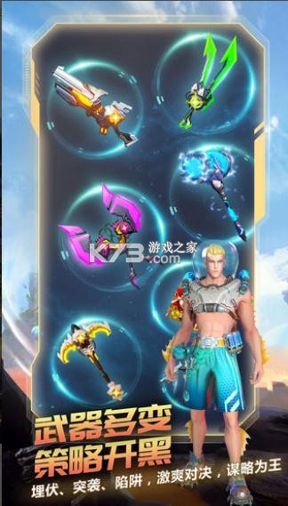 游戏拥有近三十种特色鲜明的武器,上百个酷炫华丽的技能。你可以使用龙牙火铳、射日神弓等强力DPS武器杀出重围,也可以装备洪荒狼牙、幽海铁锚等近战神器充当开路先锋。丰富武器搭配花式道具,潜伏突袭、陷阱阴人、连招Combo,杀敌套路千变万化!