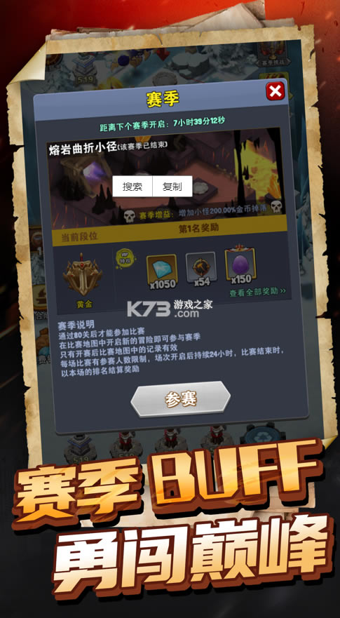 每周2场赛季对决,与其他奇兵小队一决高下,强力BUFF加身,助你登顶巅峰!更有丰富奖励等你拿!