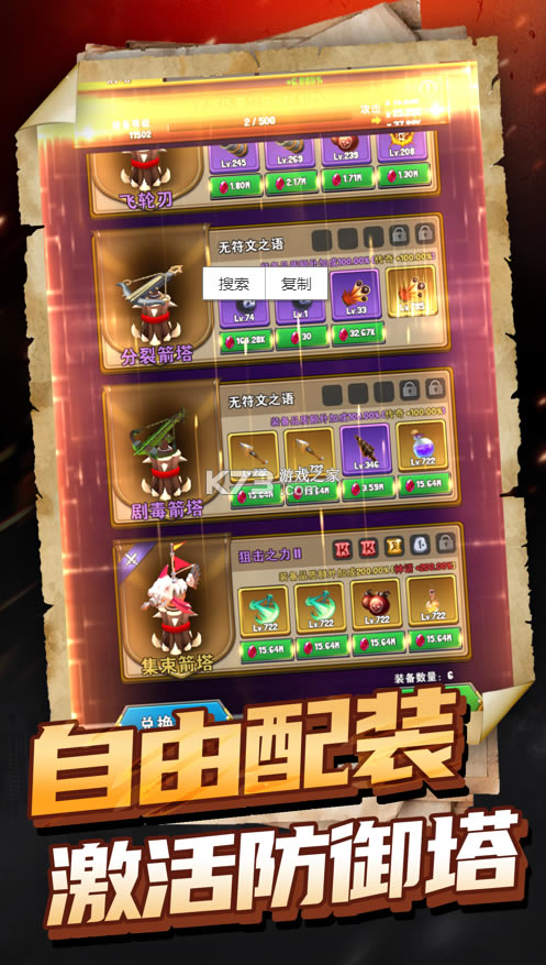 多种功能的防御塔,组合策略,针对布防,开放式阵容搭配由你决定!