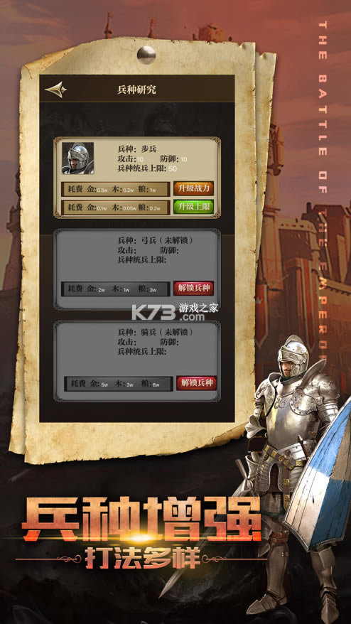 游戏中的你,需要解锁兵种,并且提升科技力量,获得一场场战役来赢得荣誉,成就属于自己的帝国,享受称王称霸的成就