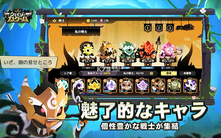 《疯狂的库库姆日服版(Krazy Kakoom)》是游戏的日服官方版本,你将与可爱的库库姆勇士一起守护元素大陆的安全。你可以招募不同职业的战士,搭配不同能力的战士会让你在守护时获得更强大的力量。
