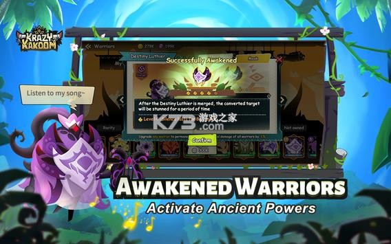 库库姆分为普通、稀有、史诗和传说四大品质。玩家根据每个库库姆的独特战斗方式和技能,排兵布阵,自由搭配3个精英“库库姆”部队。每个部队的5名库库姆相互配合技能,以最快速度击退魔族,既获得胜利!