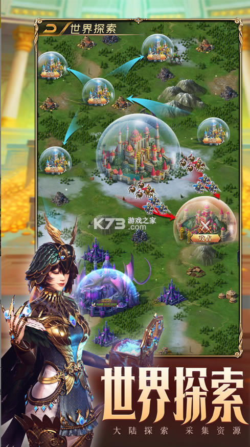 龙岛家园外散布着各种魔物和他们的要塞;在家园你可以训练精良的部队,到城外荒野之地探险,遇到魔物将他们打败,采集稀有的资源,加快家园的建设,抵御魔兽大军的即将来袭!