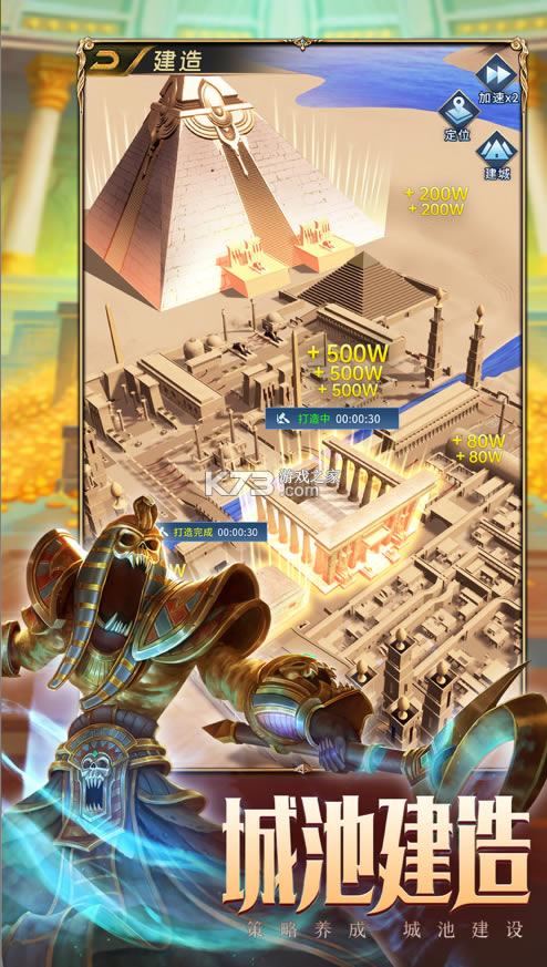 城池建设:可以建造富有异域风情的埃及城市,解锁各种不同种类的建筑,让城市越来越繁荣吧!