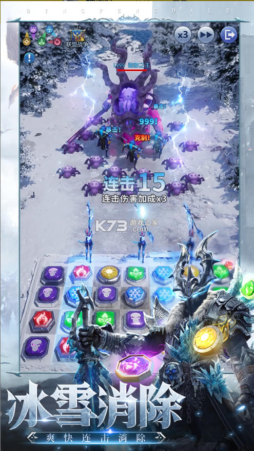 《亡灵崛起游戏》融合了三消,策略,卡牌的玩法,使有内容更加丰富,更是在三消的基础上加入英雄系统,让消除变得更有趣,更好玩,养成强力英雄,搭配自己睿智的大脑,攻城拔寨,扩张领土。