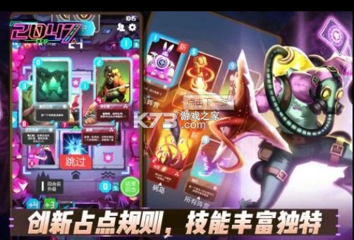 《2047》是一款竖屏轻量级卡牌竞技游戏。在游戏中,玩家可以选择24张卡牌组合出属于自己的牌组,采用各式各样的策略,掌控瞬息万变的局势,与对手争夺据点,赢得最终的胜利。
