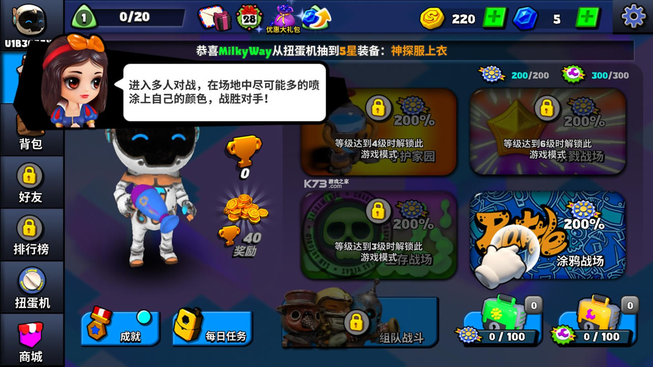立即尝试SplatGo –彩弹色彩大战,MOBA游戏!《SplatGO国际服》是款在风格上延续任天堂《Splatoon》系列的手机多人射击类游戏,玩家可以扮演双方的角色,通过对地图上的色泽进行喷射,从而实现快速移动、补给、射击等的全方位玩法,你还可以解锁不同的武器,与队友协作,让战斗更加热辣刺激。