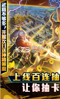 2、开服次日登录即送:神将黄忠、黄金*18888、铜币*50W、粮草*50W、木材*50W、精铁*50W。