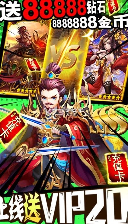 1、上线即送VIP20,888W金币 、88888钻石,每天登陆领取充值卡,7天登陆领取千元充值