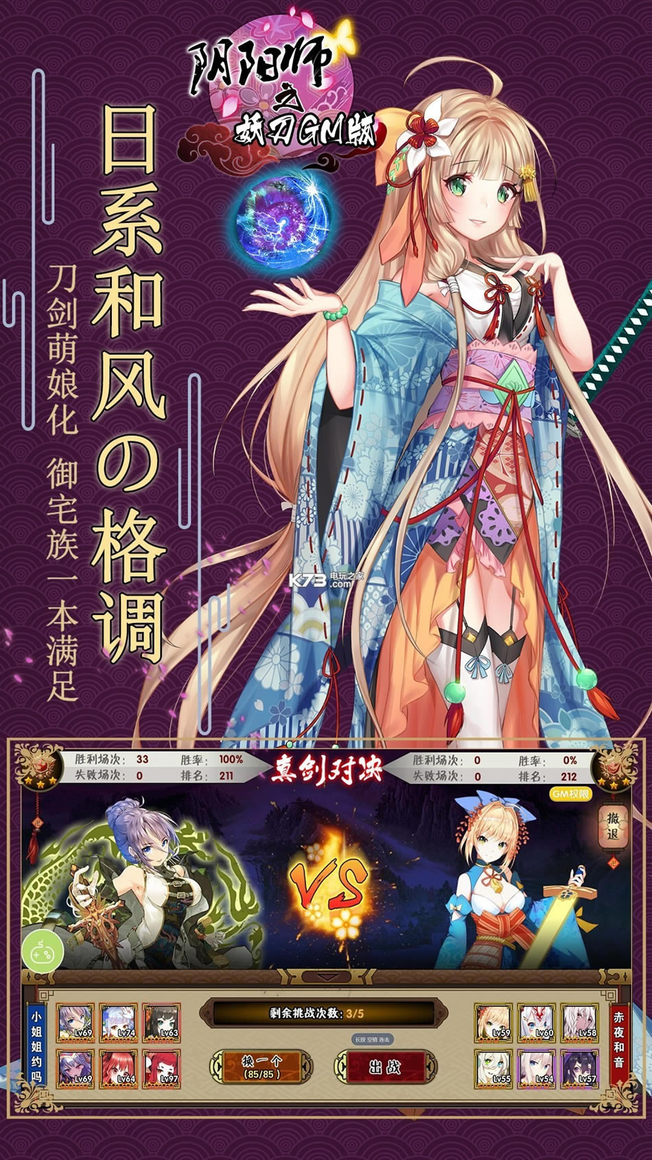 《阴阳师之妖刀GM版》是款独特二次元题材游戏,更多萌系性感不同风格的美女角色,更多刺激百变的暴击对决,大家在游戏其中获得更多的战斗神器,超无敌的游戏,玩家们快来收获惊喜!