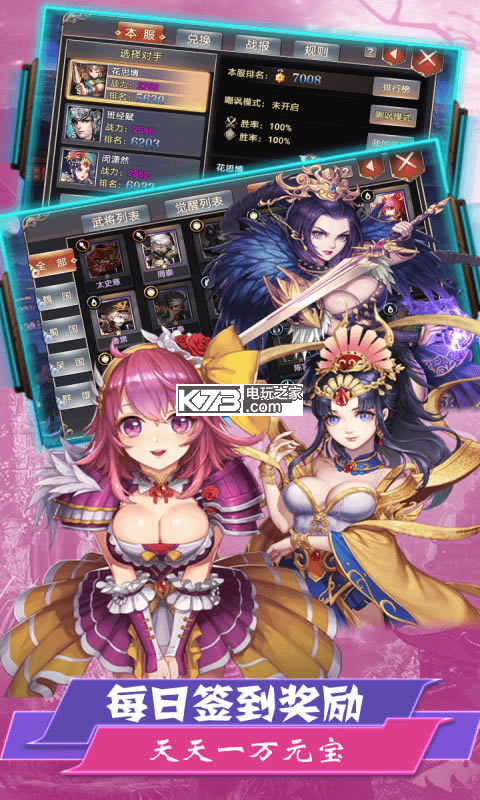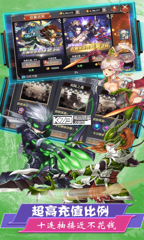 《醉游三国》以推图为主线,在借鉴了刀塔传奇战斗模式下,独创援军系统,打破了传统的5人战局。新增3个援军位置,让玩家精心培养的武将有了更多的勇武之地。 增加援军系统让更多的武将上阵杀敌,合理的配置援军,可以让你做到后发制人,感受绝地反击的快乐。