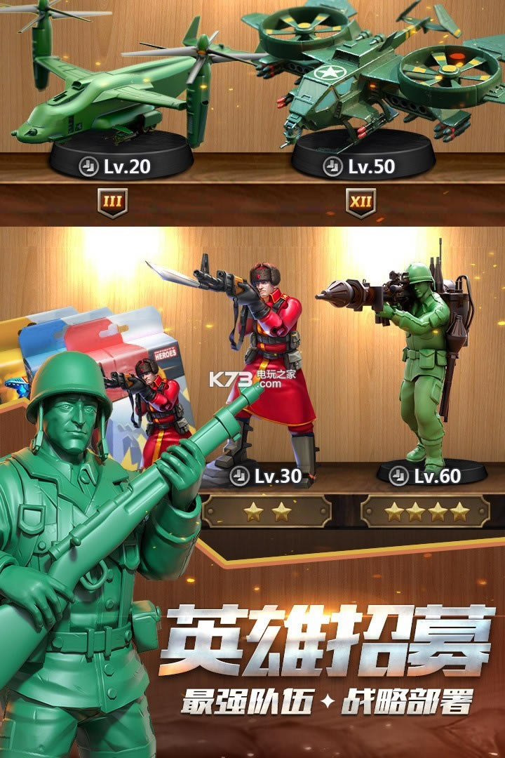多款珍藏版英雄军种帅气来袭,技能装备自由搭配,玩家可全方位打造自己的专属玩具兵团。