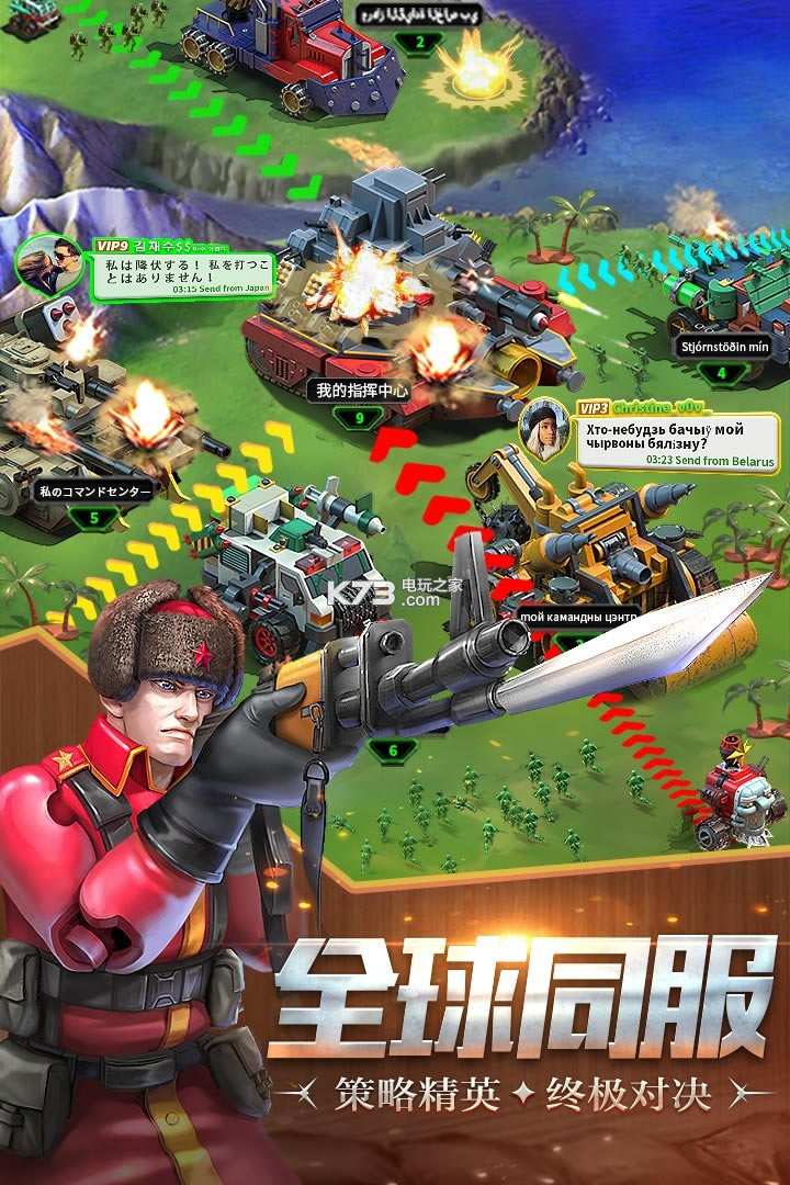 《兵人大战》是一款充满童话色彩的玩具题材战略游戏,在这里玩家扮演小兵人们的指挥官,可以建设自己的基地,训练玩具军团与来自世界各地成千上万的线上玩家战斗。在自己的卧室里来进行一场充满乐趣的战争吧!提高你的步兵,飞机,坦克或者火炮等强力单位。率领玩具军队攻城拔寨,抵抗邪恶玩具们的入侵,获得海量资源,追寻世界的原有秩序与和平!