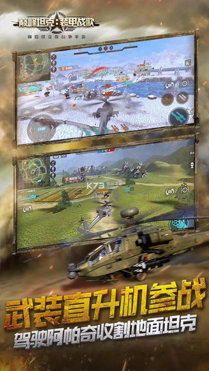 在武装直升机、主战坦克和装甲车间自由切换,体验陆地与天空三维一体化的全方位竞技模式。