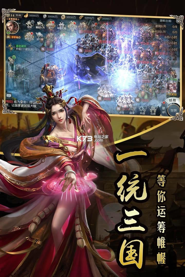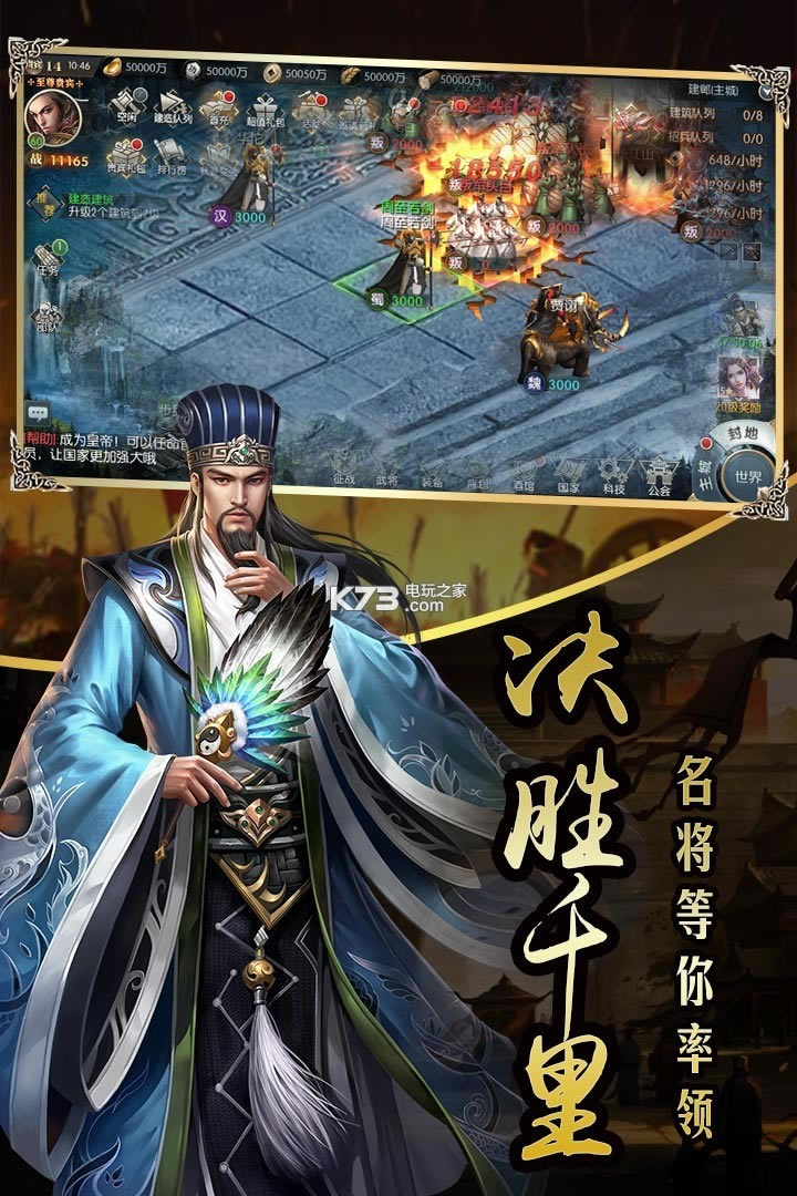 天下大势,分久必合。国家之间战火硝烟,魏蜀吴汉只能存一。数千城池之争,全地图领土攻伐,每场国战都是一场国家的生死存亡!不进攻,就只有死亡!你难道是天命所系,可一统三国否?