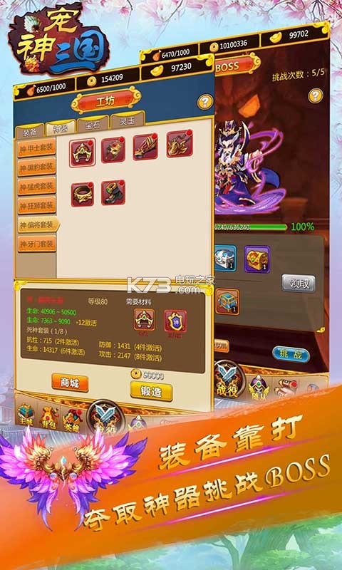《神宠三国》玩法丰富,操作简单;装备靠打,材料靠爆;