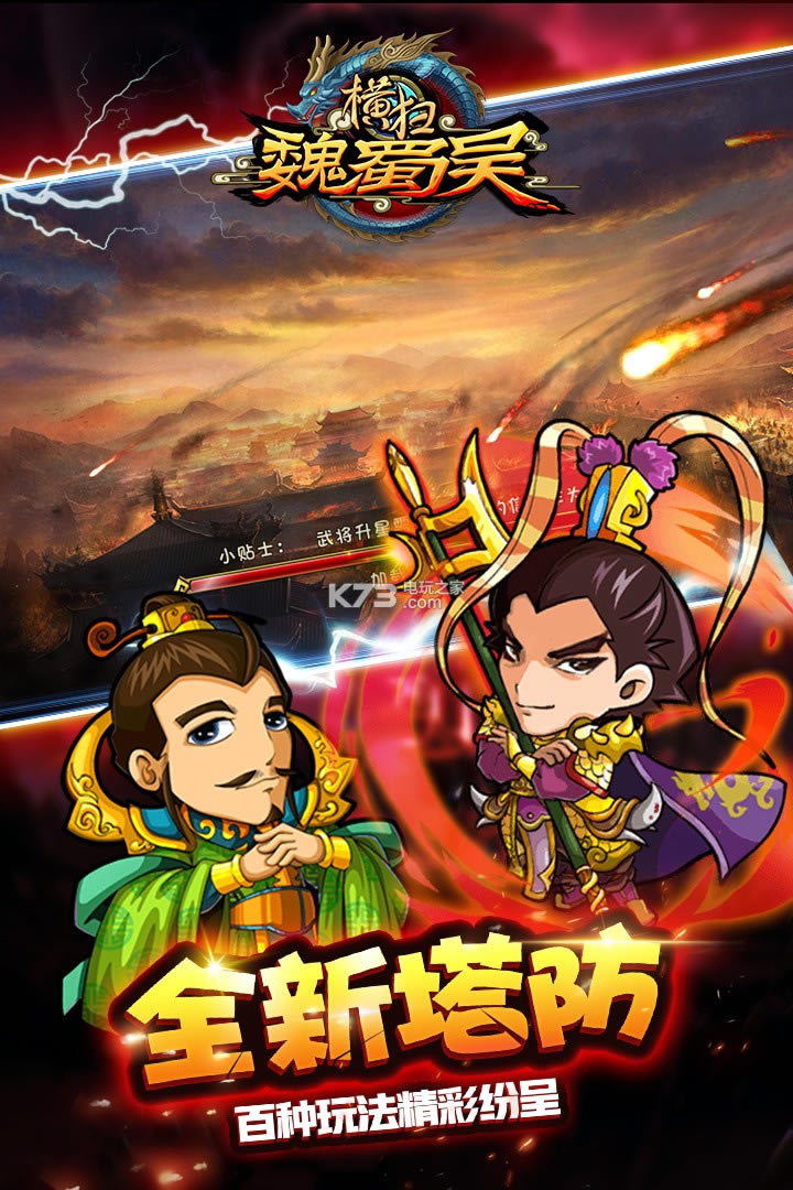 《横扫魏蜀吴手游》感受经典策略对战竞技游戏。全新的塔防元素融入内容,体验风起云涌的游戏玩法,招贤纳士对战竞技体验,组建你的联盟开始征战,开疆拓土游戏邀你一战。