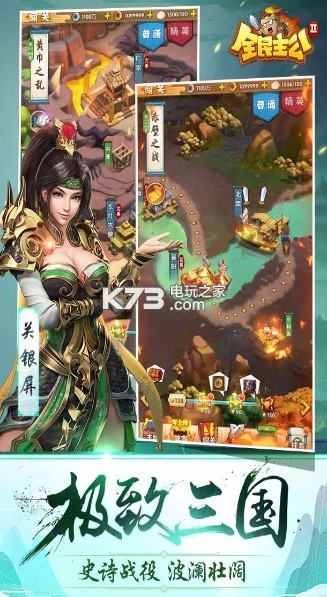 三国时代可谓中国历史上最辉煌的一页,短短一甲子之间英雄辈出,谋云将雨,从举世无双的吕布、忠义堪称的关羽,一身虎胆的赵云,到运筹帷幄的诸葛亮、英姿勃发的周瑜等历史名将,在《全民主公2》中,都有可能招募麾下,为你效力马前,成就千古霸业!