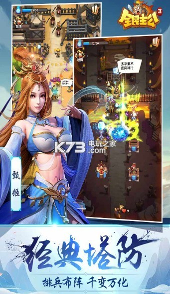 游戏以塔防和卡牌为主要玩法,操作简便,轻松掌握;游戏提供近百位武将通过自由组合、自由培养,最大限度发挥每位武将的极致战力,运筹帷幄,决胜千里!