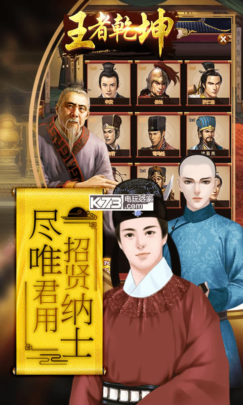 《王者乾坤gm版》是一款可以实现男性玩家伟大的三妻四妾梦想的绝佳模拟类宫廷当官手游,玩家在《王者乾坤乐嗨嗨版》中可以经商或者入朝廷做官,做一个架空历史的古代达官贵人,娶遍天下美女生一堆儿女。