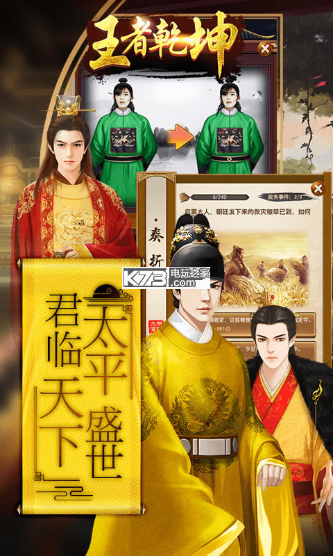 《王者乾坤》以古代大明官场为题材,官老爷第一视角体验游戏,轻松穿越明朝真实体验官爷日常,开创属于自己的辉煌官途,诚意大作,轻松养成,生动呈现娶妻纳妾、生娃养娃,培养门客,联盟争霸、多人社交等精彩玩法。步入官场你是做个低调从九品,还是权倾朝野,坐享天下美人的官居一品的王爷?还等什么?你最终能官居几品?