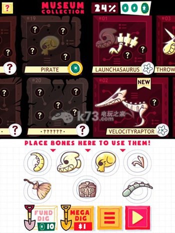 当解锁并收集到足够多化石的时候,你可以在游戏的小型博物馆中查看你的战利品