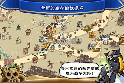 教学的途中适时穿插了一些剧情,不过小编发现在第一次学习本作的塔防玩法时,竟然出现了卡剧情的情况,无任何下一步提示,针对这个问题解决方法就是完全退出游戏再进入就可以直接跳入下一个环节了。游戏体积看似很大,可实际上流畅度的优化还是不错的,另外有一点不得不说的是,实际的游戏画面与《王国保卫战》有几分相似,但是线条显得更加细腻,色泽也更明亮一些。