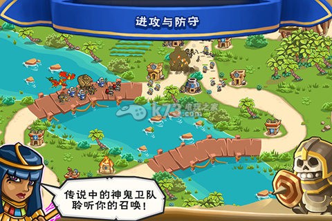 除了各式炮塔,技能的使用也没有缺席,攻击、防御两大类技能足够多,细分的种类也还是陨石、闪电、冰冻等等。此外本作还加入了一个类似“间谍”的机制,你可以让法老指派一些法老虫去端敌人的老窝,让其快速损血,这在 PVP 中会经常用到。
