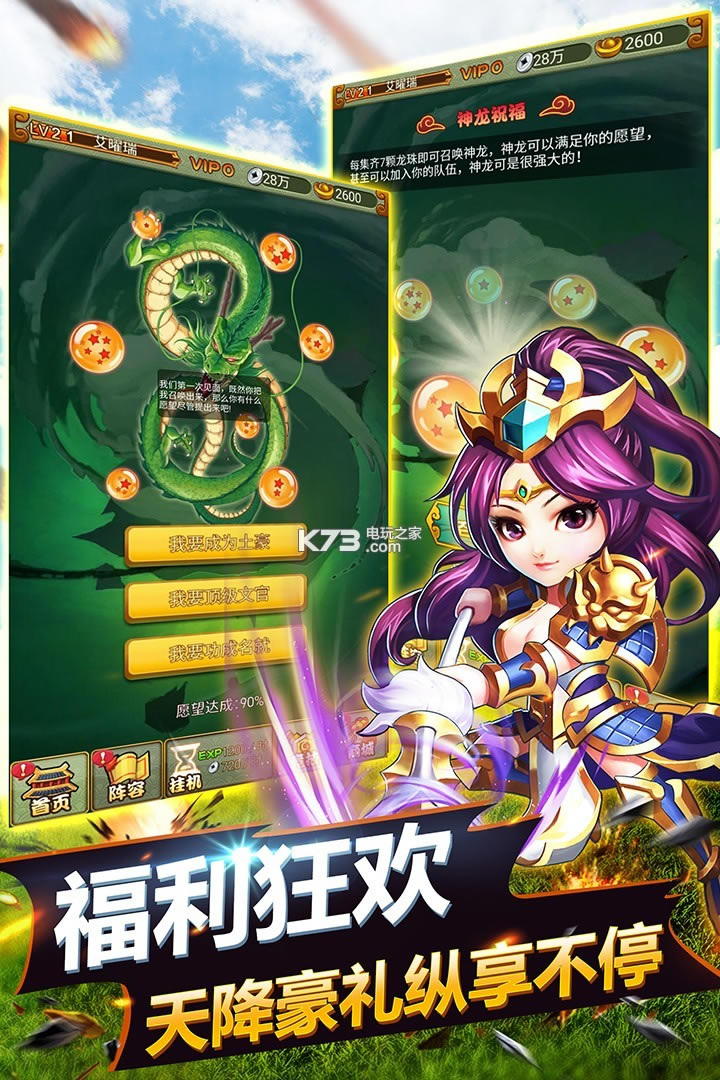 游戏有海量的三国名将可进行进阶养成,神将合体炫酷大招炸裂全屏,万人团战享受全名激情对决;各式战斗体系打造了游戏超强的策略性和战术性。