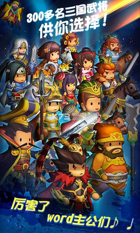 游戏将提供三个国家、五个阵营、三百余种武将供玩家选择、 玩家可以通过自己的努力获取自己心仪的三国武将, 使用他们为自己开疆拓土一统天下!