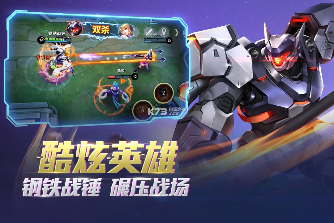 酷炫机甲钢铁战锤、合金收割者哈迪斯、学生会长小姐姐穆、铁血夏侯惇、美艳兔女郎、和风阴阳师、四形态传说皮肤……众多全新英雄与皮肤惊艳来袭,精美人设,多样风格,快来搭配不同时空下的英雄,组建最强宇宙战队,尽享超酷无限团战。