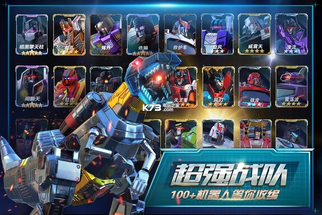 以擎天柱、威震天、大黄蜂为首的100+角色等你收集!组队闯关,解锁无敌合体金刚!
