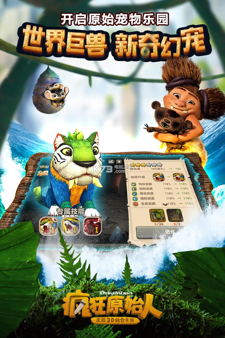 多位不同属性的强力伙伴来助力你提升战力、防御。玩家可以自由选择伙伴,搭配队伍技能,你的伙伴将助你扫荡史前部落。带上伙伴,组建部落,做一方酋长,称霸蛮荒!