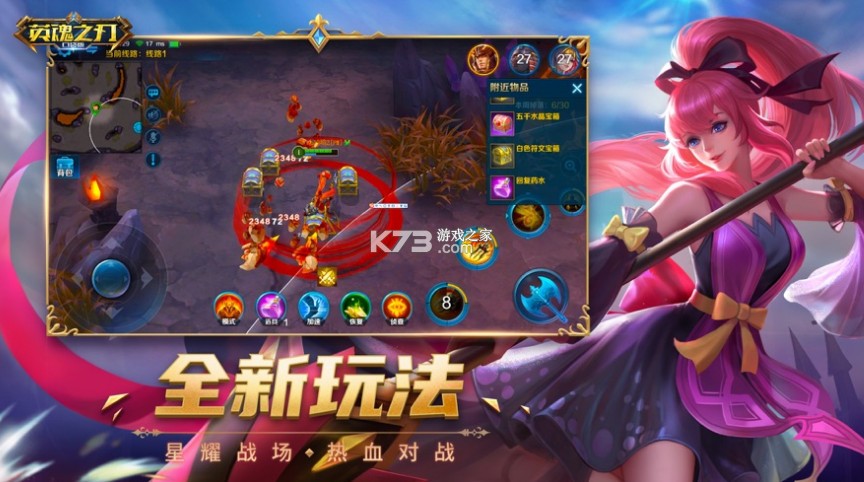 在英魂之刃中,迷雾、高低地的视野差异,眼位、装备主动技能等独特设定还原最真实的MOBA竞技环境,让您热血决战,爽快不停;秒速开团,10分钟尽享真实对战体验,不论新手还是高手,都能从中找到游戏决战乐趣。