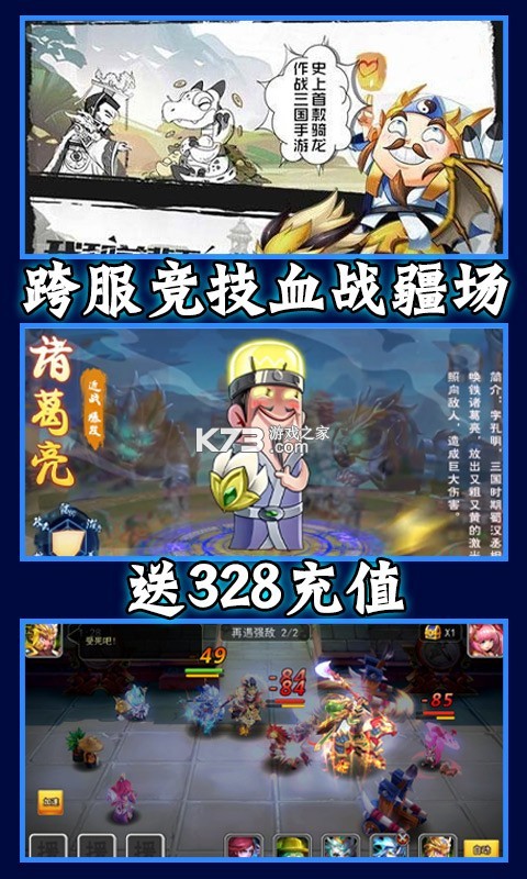 《泡面三国送328充值》在这里体验全新的三国世界,在这里上线就可以直接领取328元的豪华充值礼包,在这里享受充足的游戏福利,让你轻松升级,成为最强的,还有各种炫酷战斗画面。