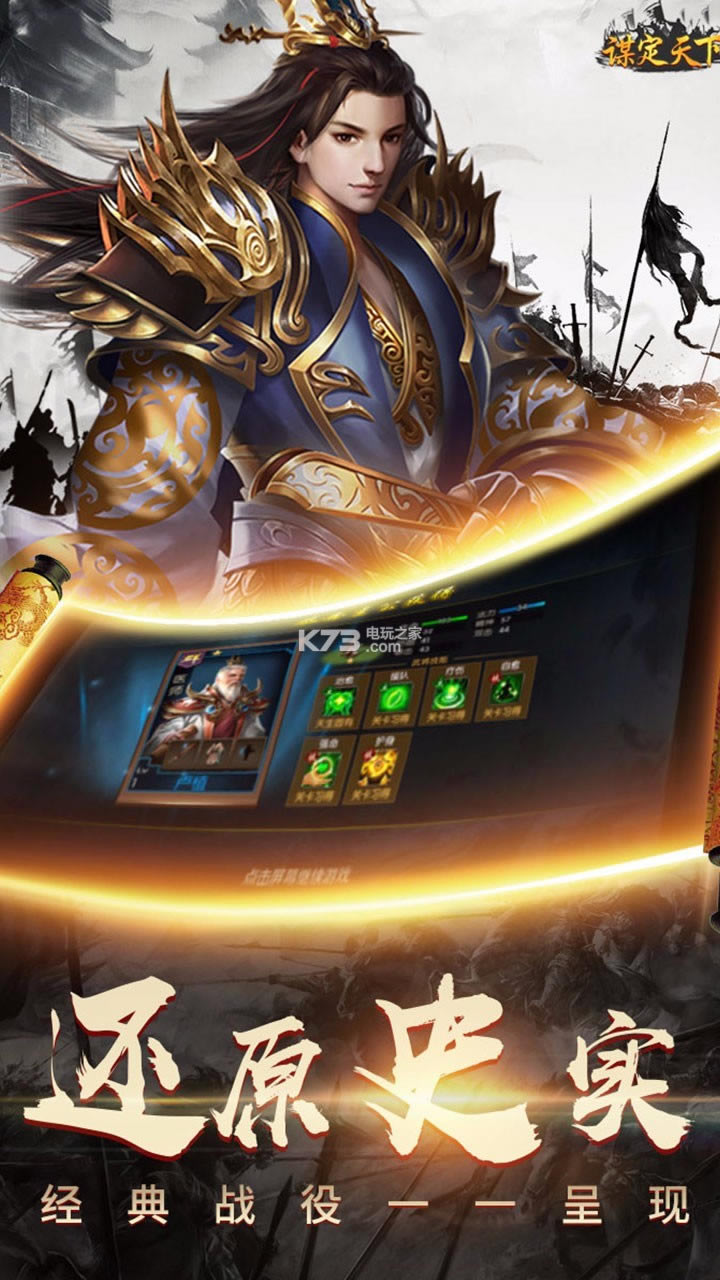 年度战棋策略手游《谋定天下》是一款策略战棋游戏,致敬经典传奇游戏曹操传和三国志的完美结合,以三国背景为主题,简易养成属于自己的家园,通过游戏关卡了解每一个武将的历史战役。更通过年代关卡知晓三国历史进程完成三国归晋的王朝霸业,通过自己的排兵布阵和战场指挥,击败强敌,称霸天下!